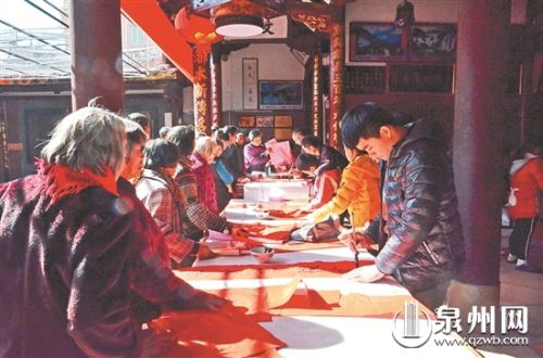 泉州网2月15日讯 为更好地贯彻落实党的十九大精神,深入基层,深入群众,进一步丰富基层群众的精神文化生活,连日来,洛江区委宣传部、区纪委、区卫计局、区文联等单位联合开展“迎春送福 翰墨香远”——学习贯彻十九大精神写赠春联活动,组织书画家深入全区各乡镇(街道)及企业、机关、村居、军营,将十九大精神、廉洁自律、家风家训、拥军优属等内容融入写春联活动中,营造了欢乐祥和的节日氛围。