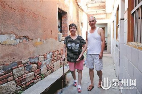 在泉州市区新华路上一条叫新路埕的巷子里,街坊四邻每天都能看到,58岁的林家顺陪伴自己拄拐的55岁妻子傅小鹏散步。