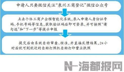 据了解,泉州市委、市政府和省工商局积极推进个体工商户全程智能化登记系统改革,今年上半年,省工商局在泉州市试点研发了个体工商户全程智能化登记系统,拟在泉州开发区及全市试点后在全省推开。