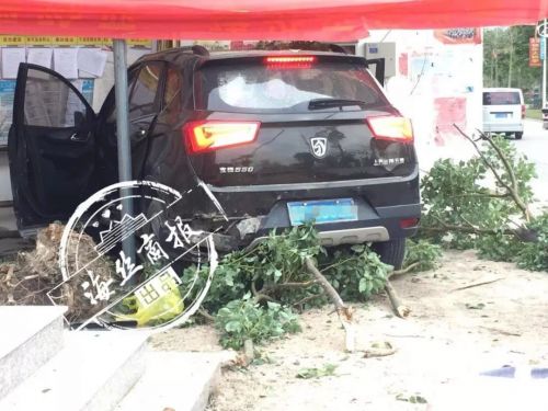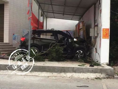 “当时只感觉有一个什么东西从我背后呼啸而过,尘土飞扬,定睛一看才发现是一辆小车撞到墙上。”据现场目击者李先生介绍,13时40分左右,他骑电动车到大洋村村委会的诊所上班,车刚停下来,人还没下车,事故车辆就撞上村委会门口的一棵绿化树,直接从他背后飞驰而过,接着就撞到一堵墙停了下来。
