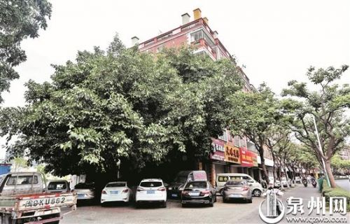 “你看,这些榕树挨着围墙生长,已经长到屋里了。”在小区5号楼南侧位置,居民李阿姨指着几株高达十几米的大树告诉记者,她们的老房子是2003年拆的,2005年搬回这个安置小区,“这些树应该是当年种的,才十几年时间,就长得这么高大了。”