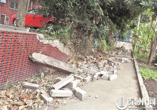 泉州市区城西环路北绿化树疯长进屋来 挡土墙倒塌无人管