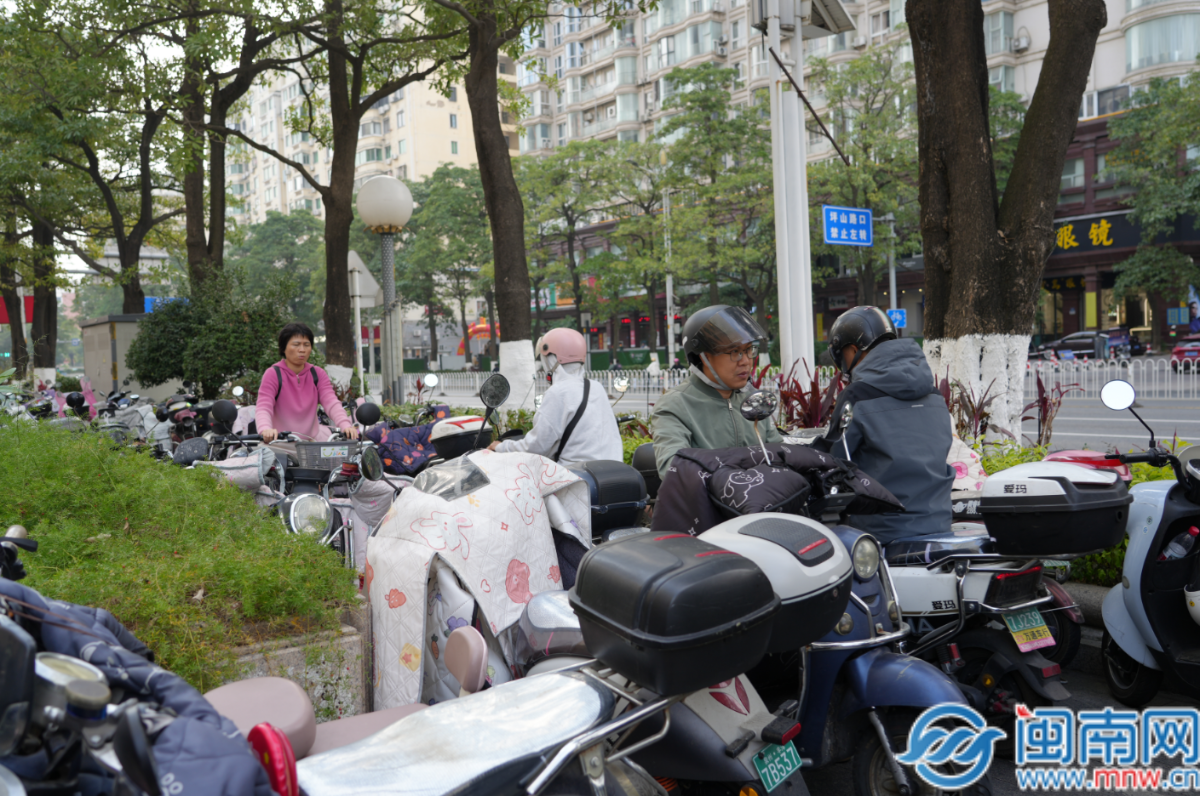 闽南网12月3日讯(闽南网记者 苏毓茹 洪泓塬 文/图/视频)“每天上下班经过这里,都要骑得小心翼翼。”近日,有市民向闽南网反映称,泉州市区丰泽街保险大厦路段的非机动车道,长期成为电动车的停车场,十分影响通行,遇到上下班高峰期更是拥堵不堪,而违停路段的马路对面就是交警岗亭。