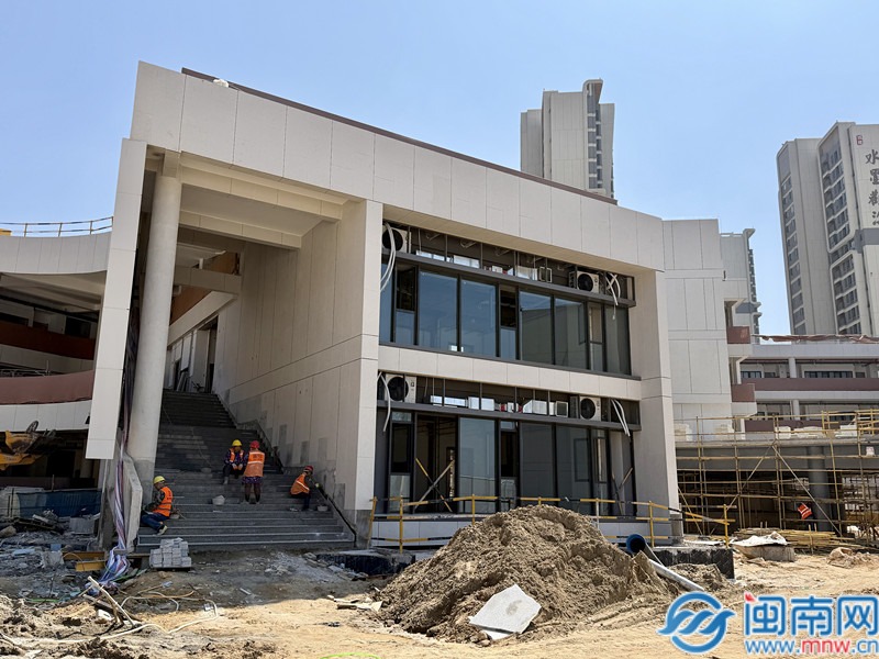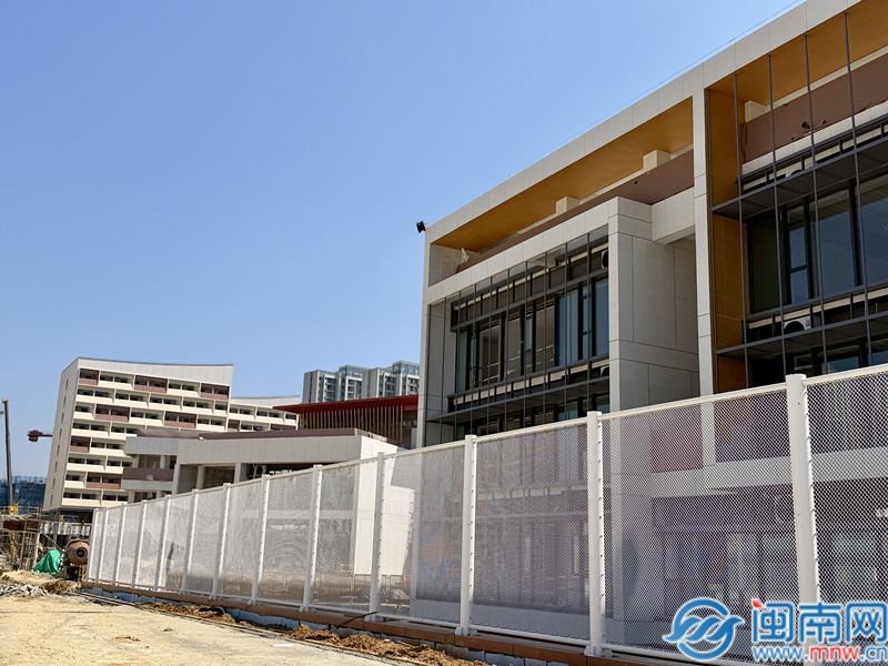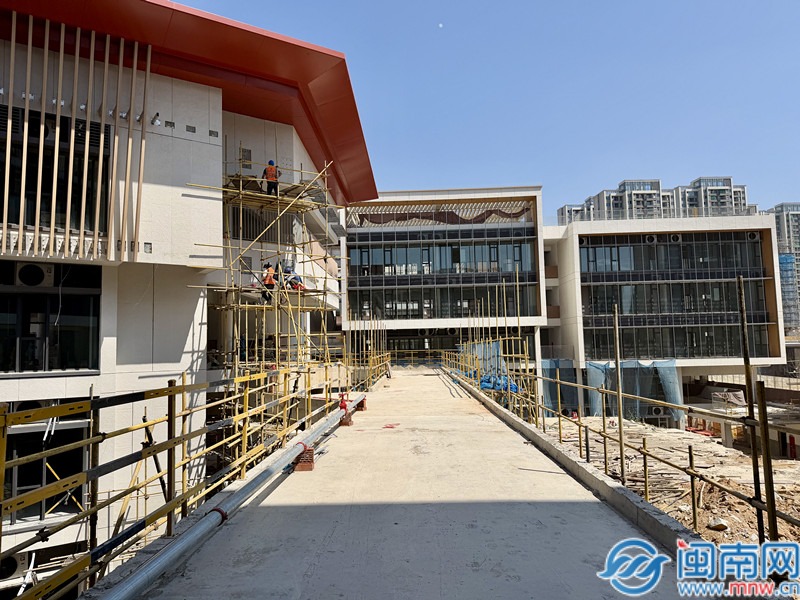 闽南网记者在项目现场看到,校区所有建筑已全面落架,外立面呈现出简洁大气的风格,现场施工重心已转向机电安装及室外配套工程。