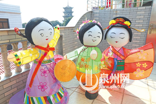 本地艺人制作的中日韩三国人偶花灯,将与日韩选送的花灯一起为今年的泉州灯会增添日韩风情。