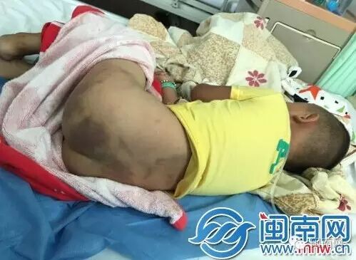 据家属介绍,阿弟的左脑颅骨骨折、全身多处软组织受挫。因为疼痛,孩子还一直呕吐,已经两天没吃过东西了。受过惊吓的阿弟,睡一会就醒,醒来疼得直哭。