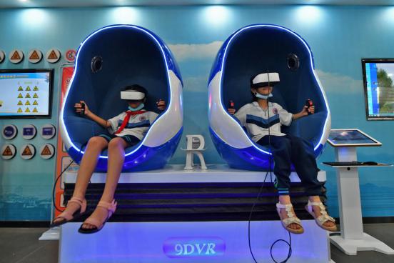 学生在VR体验仓内感受地震、台风等灾害面前的防护知识