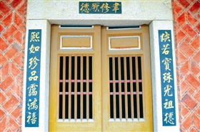 而记者了解到,与焕熙先生的事业一样让人称颂的,是他和夫人感人的爱情故事。“其实熙宝楼就是用他们夫妻俩的名字命名的,这栋楼原来叫春晖楼,后来才改成熙宝楼。”蔡菜带着记者来到熙宝楼二楼阳台,阳台上有一副楹联“焕若宝珠光祖德,熙如珍品霭鸿禧”。显然,这是一副典型的闽南嵌名联,将“焕熙”与“宝珍”二人的名字嵌于联中,以示夫妻深情。