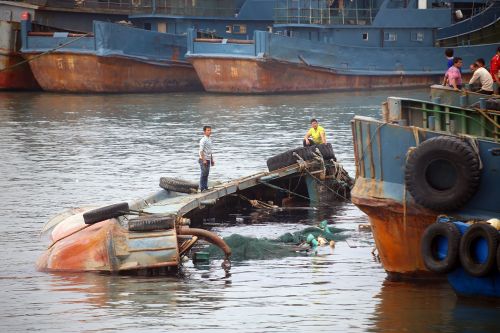 据祥芝边防派出所有关负责人介绍,当日清晨便接到渔民报警,经了解遇险时间约在凌晨5时许,系因海上突发风浪,事发水域联排靠泊的部分渔船被风吹散,而上述两艘渔船被吹至暗礁处,海水退潮后触礁搁浅船体侧斜,其中闽狮渔06795侧翻。“渔船是靠港一侧单向固定,旁边的船若被吹散,渔船就会随风向两侧呈弧形摆动。”一位船管员说。