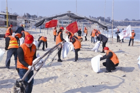 在活动现场记者看到,志愿者们在沙滩上捡拾丢弃的饮料瓶、食品包装袋、泡沫、木头等垃圾。他们有的来自永宁镇各村(社区),有的是大学生村官,也有妇女和老人参与,大家齐心协力,两个多小时后基本将沙滩上的垃圾清理完毕。