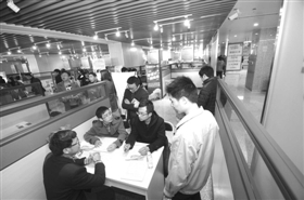 2月28日上午10时许,当记者走进新启用的石狮市人力资源市场时,大厅内不少人都在排队填表,来来往往的应聘者们人手一份《招聘特刊》,边走边仔细浏览着招聘简章,寻找合适的岗位。