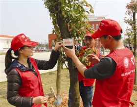 植树现场,青年志愿者们热情高涨,直奔植树划分区域,迫不及待地拿起铁锹、扛起树苗开始干活。大家分工协作,挖坑、放苗、培土、浇水,每一个环节都做得认真细致,并将统一制作铁质个性铭牌挂在树苗上,为树苗命名。大家以自己的实际行动保护环境,用自己的双手为营造人与自热和谐的生态环境尽了一份力量。经过大家的共同努力,终于顺利完成了树苗的种植任务。