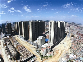 近日,记者途经凤凰城(镇中路二期安置房)周边道路时,发现车辆可以在新华路、聚仁路、仁和路等几条道路上通行。据负责该项目的市政工作人员小施介绍,位于凤凰城内的镇中路、新华路、宝岛路、聚仁路、聚祥路和仁和路6条道路,除了聚祥路还在清理路面、平整场地外,其他路面都已剩下最后一道沥青铺设,不久即可全部铺设完毕。图为凤凰城全景(记者 王秀婷 颜华杰 文/图)