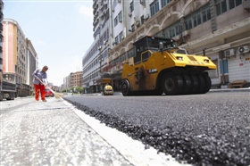 昨日石狮市多个路段进行沥青浇筑作业