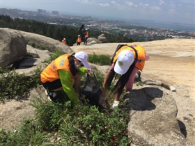 为响应“垃圾不落地”的文明新风行动,昨天上午,市委文明办、市志愿者联合会、市青年志愿者分会和市狮城社工事务所联合举行“垃圾不落地·石狮更靓丽”的环保志愿服务活动。在宝盖山姑嫂塔上,30名青年志愿者们身穿志愿者马甲,一手提着垃圾袋,一手拿着工具,一路拾级而上,仔细捡着山上垃圾。