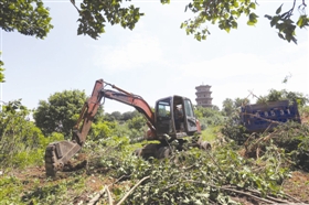六胜塔历史文化公园环境整治及绿化提升工程已经开工一个月了,不知工程有何进展?下午,我驱车来到蚶江镇紧临石湖港的金钗山六胜塔公园,了解该公园环境整治及绿化提升工程新动向。
