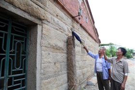 昨日下午,记者跟随邱仲昌老人来到锦尚厝上,找到邱允欠的侄儿、现年84岁的邱崇珍老人,一同来到邱允欠生前所居住的大厝前。这间厝原来是二落大厝,已拆去一落,剩下一落现无人居住。