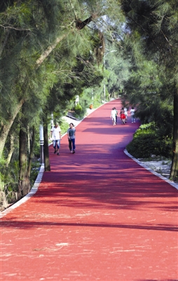 8月底,步道已经完成了底层沥青铺设。因为雨天的缘故,面层彩色沥青摊铺只好顺延。十二日,收尾工程完毕,自姑嫂塔入口的休闲广场开始,到部队后门,整条道路重新铺设了十厘米厚的沥青。这也是继前期安装木栈道后,宝盖山登山健身步道工程的又一提升项目。(记者 康清辉 颜华杰 通讯员 刘世昌)