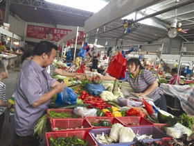 “锦亭综合市场是目前蚶江镇辖区规模最大、最专业的综合市场,市场设有90个标准摊位,40个店面,整个市场每天交易量至少在20万元以上。”锦亭村党支部书记吴平说,在市政府及市直有关部门、蚶江镇的大力支持下,由锦亭村牵头并以股份制方式投资建设了锦亭综合市场,算为锦亭村及周边六七个村庄的群众办了件实事。我了解到,锦亭村建起综合市场,不仅可以方便龙珠大道附近多家工厂数千名职工购买,而且给蚶江中学等四所学校老师及当地居民的生活也带来便利;同时该市场可安排数百人就业,龙珠大道锦亭村圆盘路段占道经营现象得到有效解决,市场周边的环境得到大大改善。当地村民无不为能在家门口的综合市场买菜购物而拍手叫好,许多村民把该市场称为家门口的“菜篮子工程”。图为锦亭综合市场一角(兰良增)
