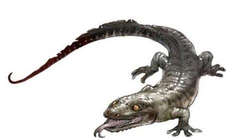 而霸王蝾螈,在《鬼吹灯》里则是个“头象青蛙,身体象没皮的鳄鱼,身长达十几米,皮肤闪着七彩的鳞光”的家伙。它有一个血盆大口,巨口中上下各有三排利齿,仅舌头就长达两米。攻则尾大舌长,横扫一片,守则皮糙肉厚,不惧水火。一似鳄鱼能下水,二如壁虎能爬墙,具有超强的行动能力。同样献上一张网友的YY图: