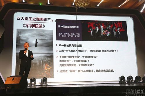 《军师联盟》是吴秀波集制片人、总监制、主演于一身的心血之作,他在现场透露,“剧本创造用了四年半,我还用了很长时间去留头发,拍摄的时间已经接近9个半月,整个团队为之付出了很多的努力。从业这么多年,我要做对得起行业、对得起自己做的事,这部作品的每一祯画面都是可以当作电影去播放的,我的拍摄记录,从一天三场,变成一天两场,现在变成一场五天,我对我自己出产的作品有要求,第一次当制片人,我也终于知道了以前跟我合作的制片人有多么不容易,可以用惊涛骇浪来形容整个过程。”吴秀波甚至放话,自己拍《军师联盟》不为赚钱。据悉,该剧卡司强大,集合了吴秀波、刘涛、李晨、张钧甯、于和伟、唐艺昕等。
