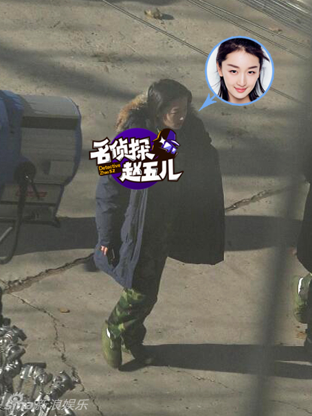 拍摄地在河北固安,当天天气十分寒冷。开拍之前,导演来给周冬雨和同组几个女演员一起说戏。休息期间,周冬雨拿着手机跟人嗨聊,笑得一脸开心。