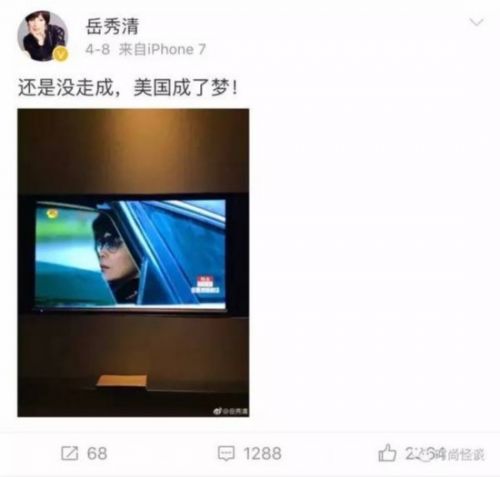 连欧阳行长的扮演者岳秀清老师都要发微博自我调侃:美国梦碎!