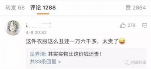 岳秀清老师在微博回复网友:这件外套的实际价格比一万六还贵。EXOME ?