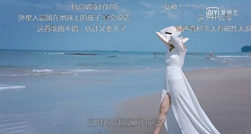 之后在沙滩上穿了件白裙子…裙子是飘逸的,只不过刘涛这尺寸,好像比起上一部,圆了不少?
