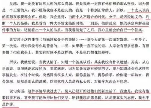 2007年,吴越在采访时提到过“分手事件”: