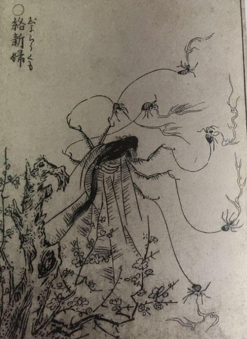 据说络新妇起源于日本镰仓时代,那时候有个美艳的女子因为红杏出墙,被丈夫发现。然后丈夫一怒之下将其扔进了装满毒蜘蛛的箱子里,就这样被无数只蜘蛛吸干惨死。死后怨灵不散,专门诱惑男子取其性命。