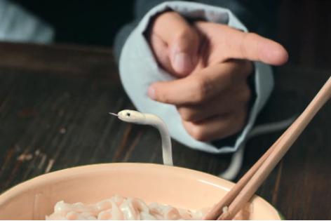 一万只草泥马奔腾而过,白蛇“嗖”得一声飞到了茶几上空。