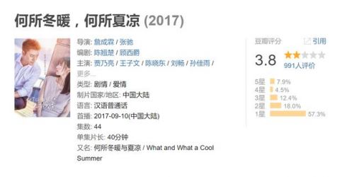 名字非常文艺,豆瓣评分却低的可怜,开播多日评论人数也不足1000,且大多差评,热度实在对不起两位主演的名气。