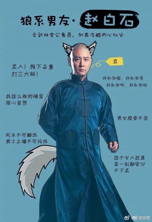 严师出高徒,《花开》播出后任重饰演的赵大人端正之外,自带呆萌属性,圈粉无数,被网友称为“狼系”男友。这也是网评五大理想型男友之一。