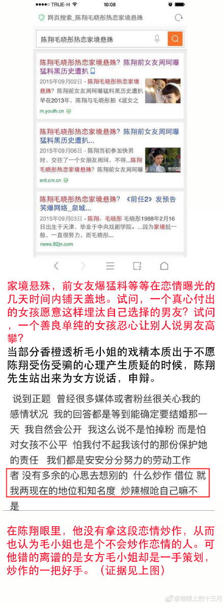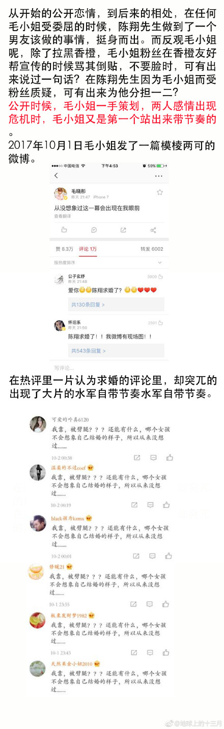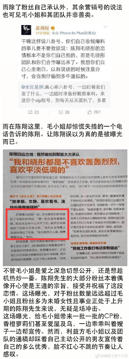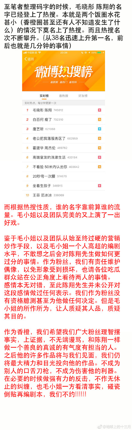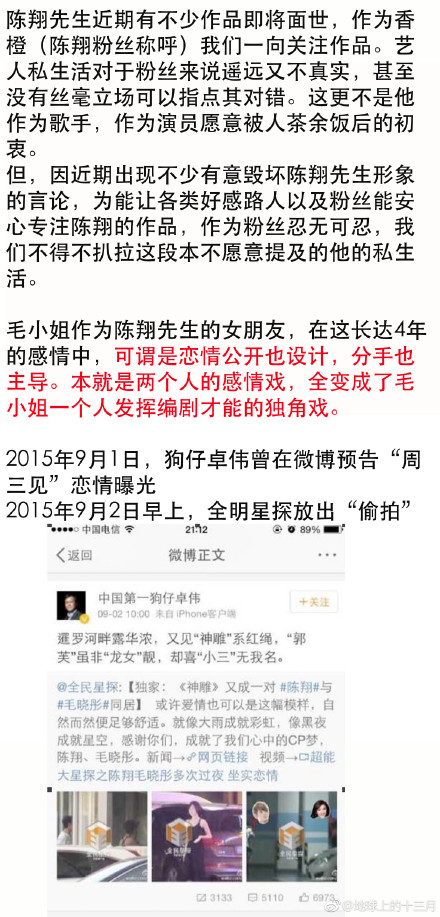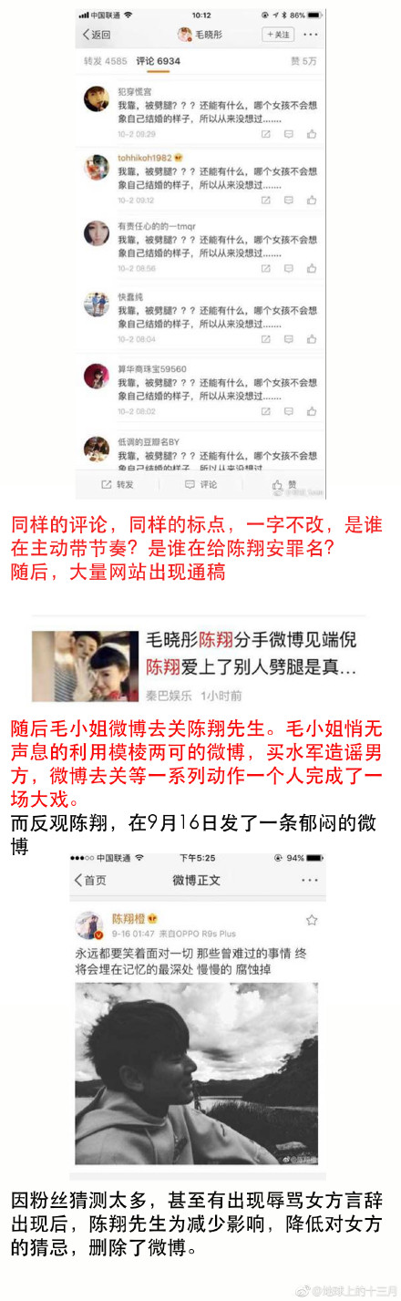 但是无论如何,两人目前已经制造了分手的痕迹,对此不少网友这么看和分析,晓晓暮雨子规啼z:在老大没发微博消息前,请香橙们理智,我们不给老大招黑; 翔Leaf:我们家老大明明早就帮毛大妈宣传了,然而毛大妈呢。但是还又营销号,指出毛晓彤疑似出轨的信息。
