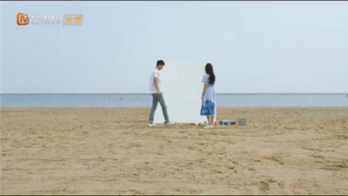 接下来的浪漫场景,蓝天白云、大海沙滩、微风阳光……男女主一起画着画聊着天,多么唯美!多么浪漫!……然而谁能告诉小编我,这从天而降的巨型画布是什么鬼?难道是男女主角两个人举着巨大画报,拼尽全力又拖又拽才来到海边?——现在的年轻人为了浪漫一把真是非常努力了!