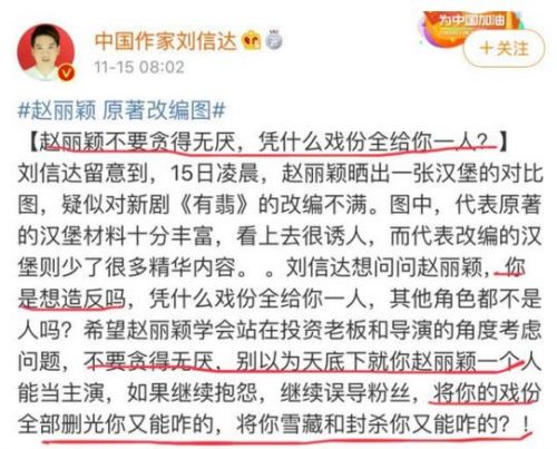 知名作家怒斥赵丽颖怎么回事说了什么 刘信达是谁个人资料