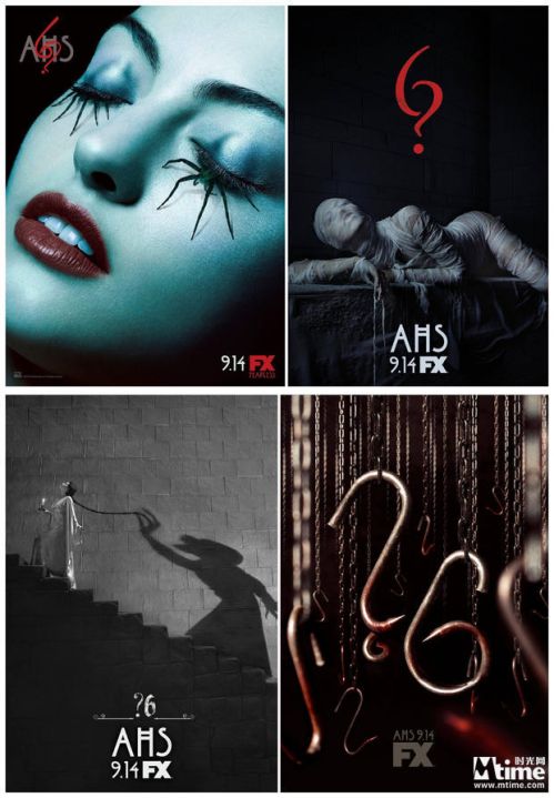 事实上,FX对待第六季比以往任何一季都要藏得深,宣发玩得贼溜。在9月开播前一个月才遮遮掩掩地发布了一个VR概念预告,趋向邪恶实验的内容神似第二季《疯人院》。海报最初也仅有一张阿拉伯数字“6”的“清简版”,后来又是一堆不知所谓的概念海报。