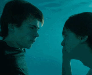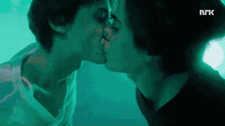 接着又开趴体了,Even跟女友吵架了,赌气去了卫生间,Isak的女伴也离开了,只剩下两人大眼瞪小眼,Even拉着Isak跑了。骑车路过一幢公寓,even突然想要游泳,撬了窗户直接爬进去,Isak和even在水里打闹着,比谁憋气时间长。两人一同沉入水下,空气静止,Even靠近Isak 亲了上去!!!, (还记得Isak 看的电影吗?电影和两人此刻接吻的画面如出一辙,背景音乐也采用了《罗密欧》中的配乐)