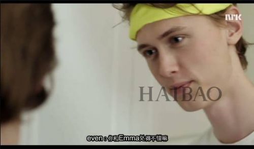 快要散的时候,Even故意留了下来,房间里只剩下他和Isak,两人没话找话的聊起了感情问题。Even试探的问“和Emma处的不错嘛”,Isak低头洗碗,简单应付:”是她热情”。