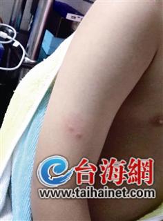 前天晚上,林先生的妻子给儿子洗澡时,发现他右手臂上有两个小圆点,并且有点肿。她问孩子,孩子说是被老师打的;又问是用什么打的,孩子“呃呃呃”地迟疑了好几声,后面说是“针”。