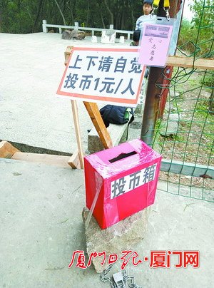 “以前没有木梯,功德箱也不是我们放置的,可能是别有用心的人借此骗取市民的钱财。”昨天下午,湖里区公园管理中心(仙岳山)的一位叶姓值班人员表示,接到群众投诉后,工作人员已将“功德箱”收走,“具体情况暂不清楚,我们会跟领导反映相关情况”。