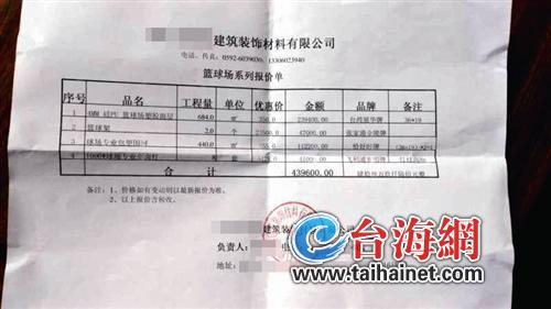 当时杨先生在开车,赶紧停在路边,拿出了笔和纸记录。随后,“刘处长”介绍了篮球场的规格等详细信息,让杨先生做好报价及合同。