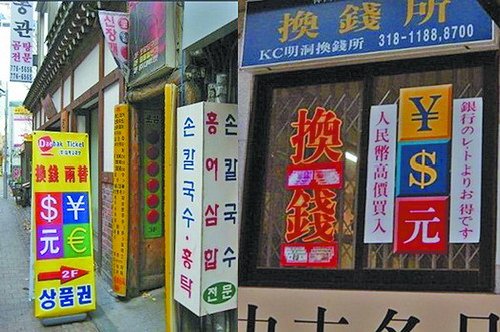 ■境外兑换外币,可能比在国内换更划算,街上换钱的小店也很多。 资料图