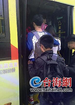 台海网4月15日讯 (海峡导报记者 林彬彬 实习生 李丽晨 文/图)上下班高峰期,特别是早上七八点,很多公交车拥挤,有些乘客为了赶时间,直接从后门挤上车。