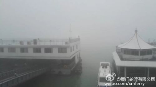 今晨大雾 轮渡码头至鼓浪屿三丘田码头航线不定时开航