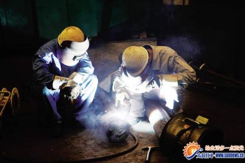 炎炎夏日,钢板被烤得几乎无法靠近,柯风波穿着厚厚的工作服,手拿焊枪,戴着面罩,焊枪中心温度可达6000度—8000度,所散发出的热气就像是蒸桑拿。