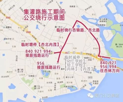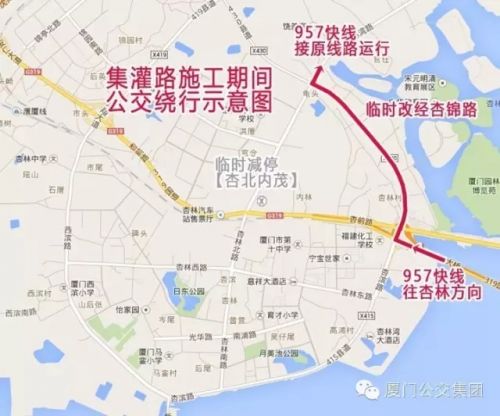 1、线路走向:思北公交场站始发,行至杏林大桥,改经杏锦路、杏林湾路接原线路运行;返程保持不变。2、站点调整:往厦门北站单向减停出岛方向的杏北内茂站。