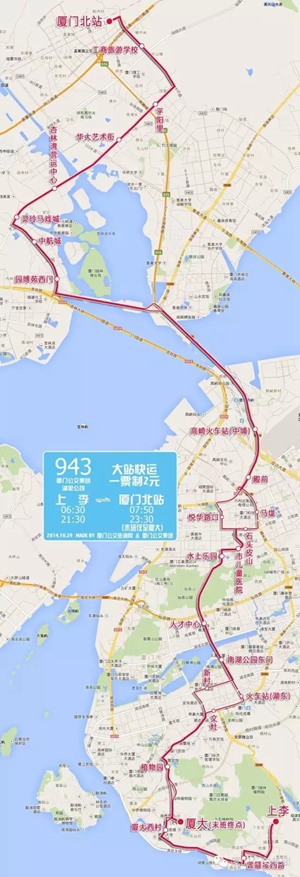(十)943路(上李—厦门北站)双向增停中航城站、华大艺术街站。