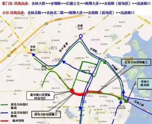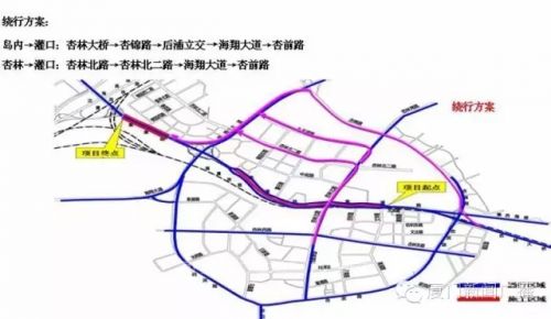 (三)2016年5月7日0时至2016年8月30日24时,集灌路(内茂路口至杏林大桥)段进岛方向主车道、集灌路(内茂路口至长途汽车站)出岛方向主车道封闭围挡施工,行经车辆利用剩余两车道通行。集灌路(董任路口至锦园东路口)段出岛方向主车道封闭围挡施工,行经车辆利用剩余一车道通行。